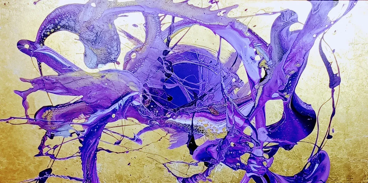 This captivating masterpiece that embodies the essence of inner strength and elegance. This original painting features a rich, gold foil leaf background, exuding a timeless and luxurious aura. At the heart of the composition lies a distressed circle, its edges softened and worn, symbolizing the journey and resilience of the human spirit.