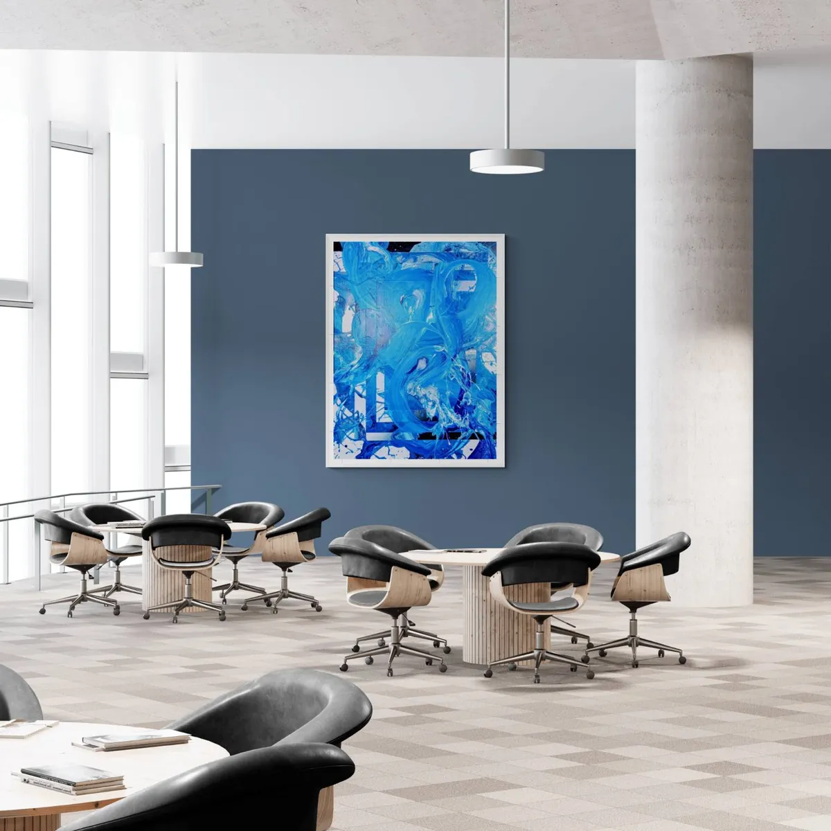Day Break is a powerful exploration of color, energy, and renewal. This mixed media piece integrates fluid acrylics and spray paint, creating a dynamic composition that embodies the vibrant energy of a sunrise. The interplay of rich oranges, golds, and purples contrasts with soft whites and blues, symbolizing the transition from night to day.