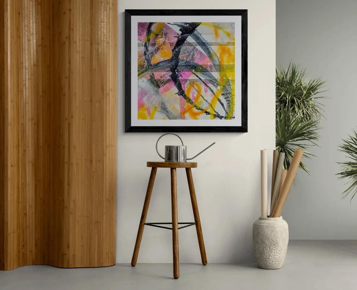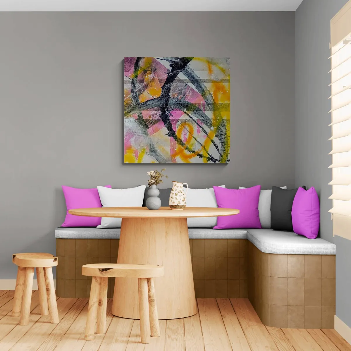Bold layers of pink, orange, black, white, and silver collide in a vibrant composition that feels both raw and refined. Tagged captures the spirit of urban energy—where color, texture, and motion intersect to create a dynamic statement of individuality and presence.