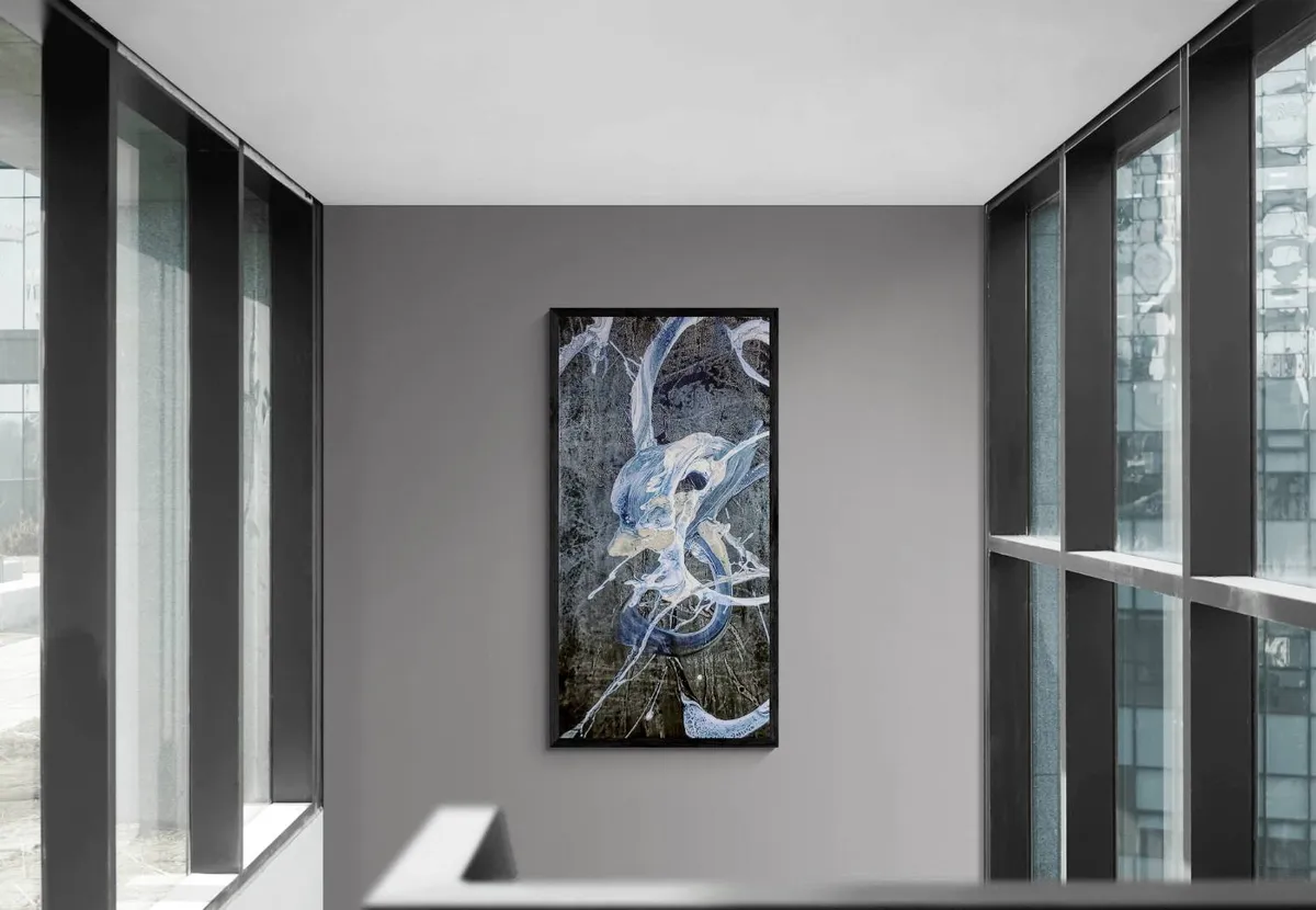 Captures the essence of transformation and forward momentum. Set against a visually textured black canvas, waves of champagne gold, white, and black interlace and flow with a sense of rhythm and energy. The composition evokes the idea of growth unfolding in real time—like a force breaking through limitation and expanding outward with elegance and strength. Each layered movement across the canvas invites viewers to reflect on the beauty of evolution, resilience, and emergence from darkness into light. Bold yet refined, Expansion embodies a harmonious balance between stillness and motion.