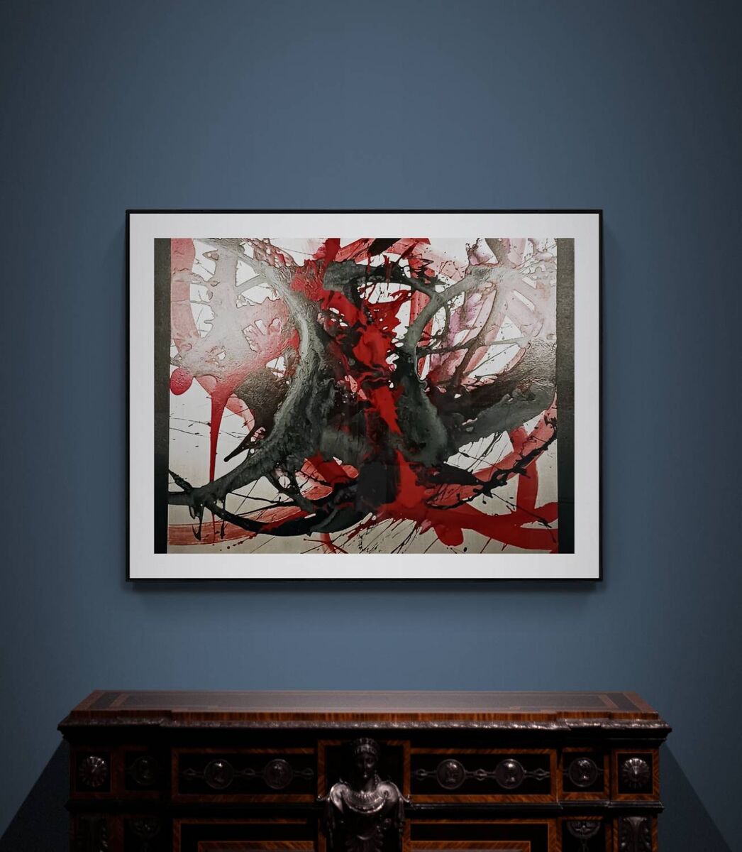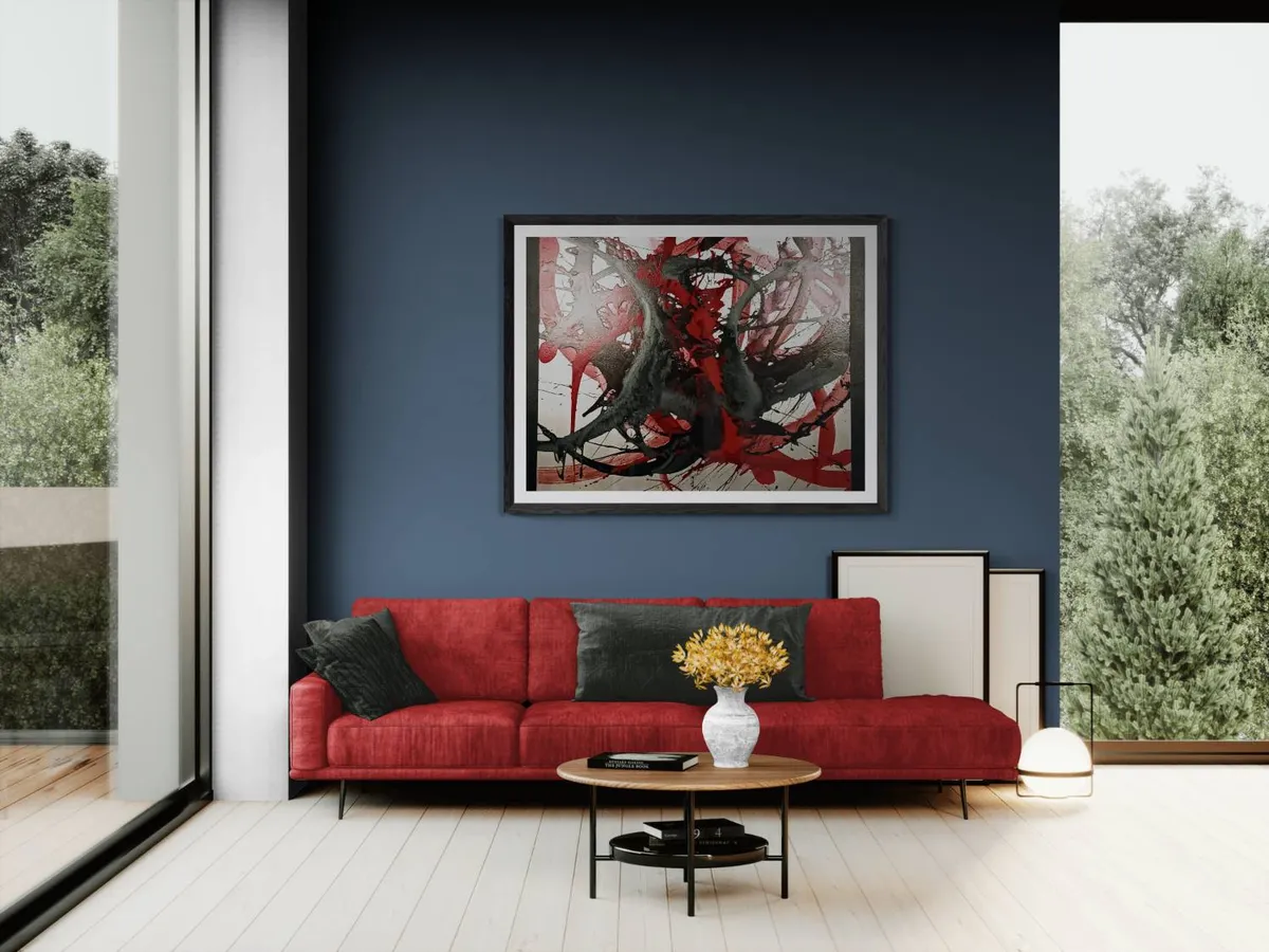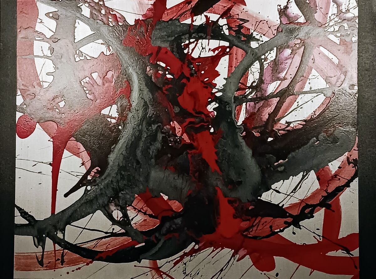 Immerse yourself in the dynamic and captivating universe of emerging abstract art, specifically the piece entitled "Koi". This vibrant creation captures the essence of energy and motion through a stunning silver, red, and black color scheme. The artist's journey, inspirations, and creative process are all interwoven into this masterpiece. Each element, from the bold shapes to the intricate textures, work together to create a truly unique and captivating experience.
