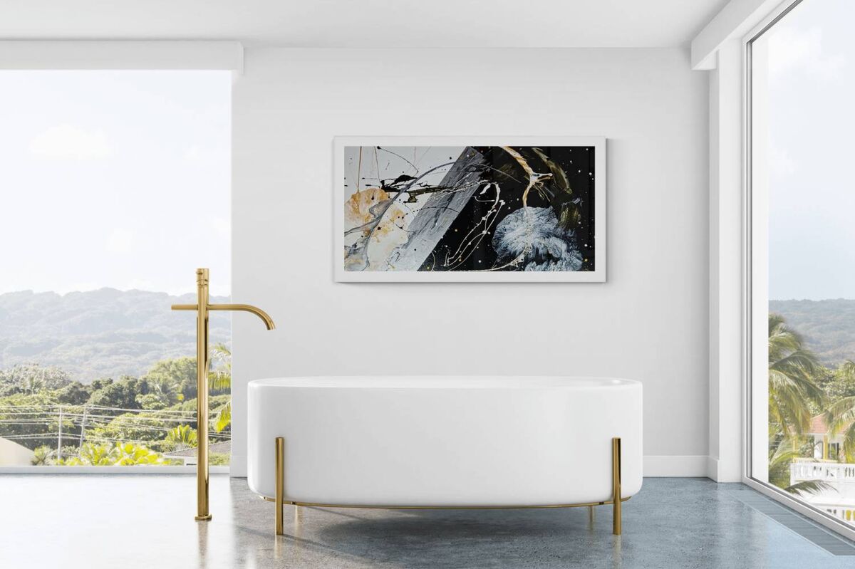 Float is a mesmerizing work of art with a stunning black and white fluid design that captures fluidity and movement in a dynamic and graceful way. It exudes elegance and purity, making it a standout masterpiece.