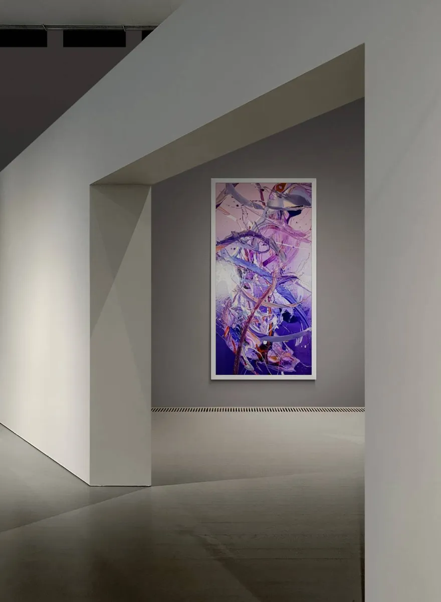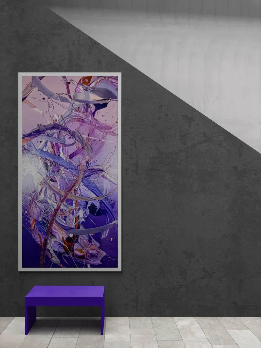 "A New Dawn" is an enchanting abstract painting that effortlessly captures the essence of a fresh beginning. The canvas is adorned with a captivating gradient that transitions seamlessly from light pink to soft purple, eventually melting into a dreamy violet backdrop. This subtle play of colors sets the stage for a visual journey that unfolds with each gaze.